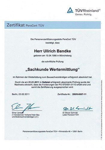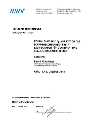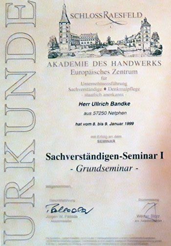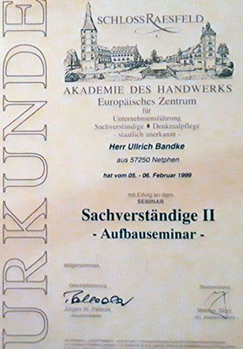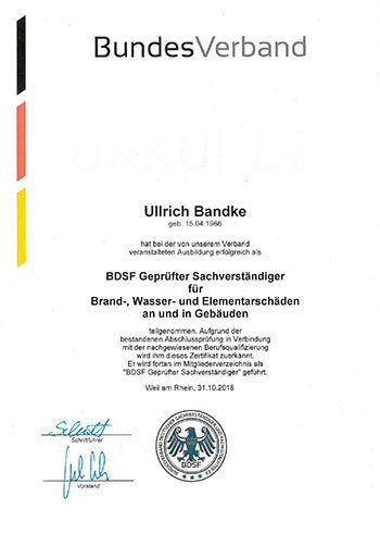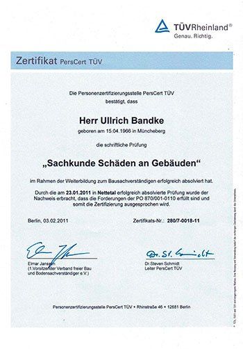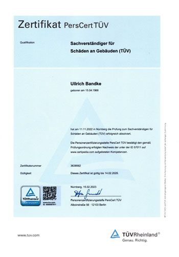 Re-Zertifizierung DIN EN ISO/IEC 17024, Sachverständiger für die Bewertung von Brand-, Sturm- und Leitungswasserschäden in und an Gebäuden